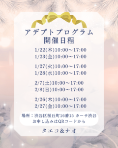 こんばんは! 多江子です♫ 前回のメールで少しだけ触れましたが この度、JR渋谷駅 西口 徒歩2分の場所に サロンをオープンする事になりました! その名も【渋谷 Witch's House】 お部屋のオーナーさんが アデ […]